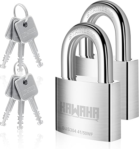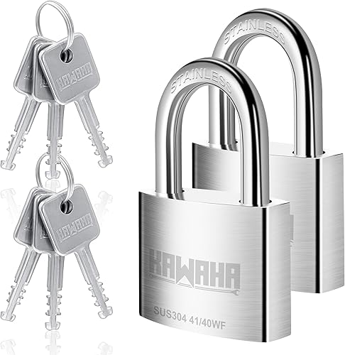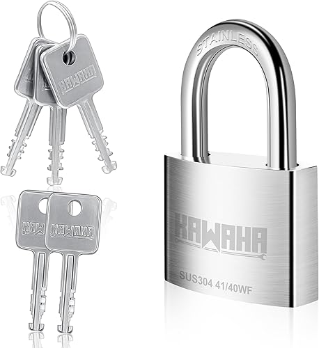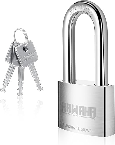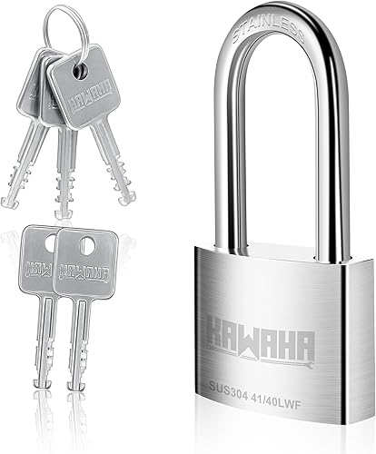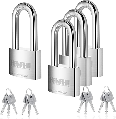 KAWAHA 41/40L-4PS 40 mm langer Bügel, Hochsicherheits-Edelstahl-Vorhängeschloss mit Edelstahlschlüssel für den Innen- und Außenbereich (robust, rostfrei) (40 mm, gleichschließend, L – 4 Stück)