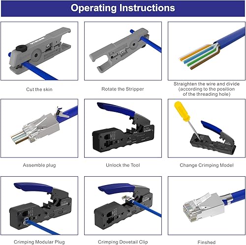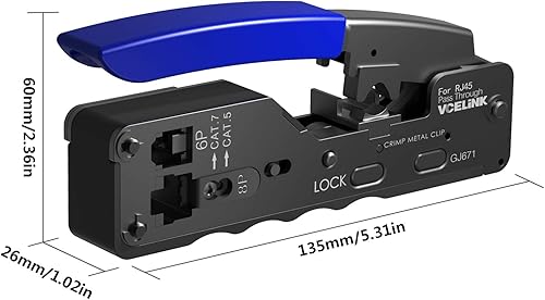 VCELINK GJ671BL Crimpzange RJ45 Presszange für stecker, Netzwerk Werkzeug für CAT 7/CAT 6A/CAT 6/CAT 5E/CAT 5 Netzwerkstecker und 6P Telefonestecker
