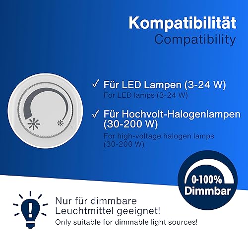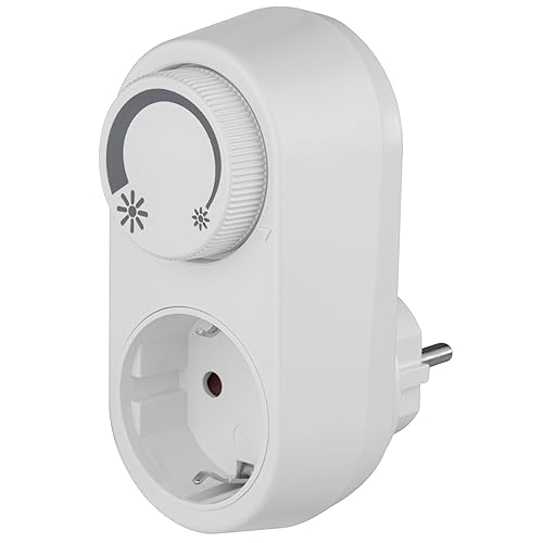 REV Steckdosendimmer – Dimmer für LED, Glüh- & Hochvolt-Halogenlampen - einfache Plug & Play Lösung mit Ein/Aus-Drehschalter & erhöhtem Berührungsschutz, weiß