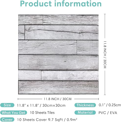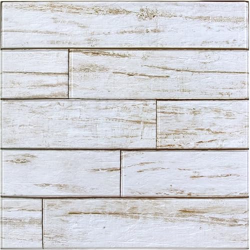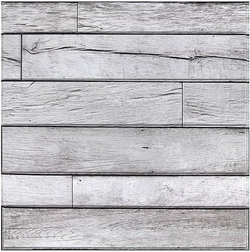 Commomy 10 Stück 3D Wandpaneele Selbstklebend Holzoptik 30 x 30 cm, Retro Weiß Holzimitat PVC Wandverkleidung Selbstklebend, für Wohnzimmer, Schlafzimmer, Innerwanddekoration