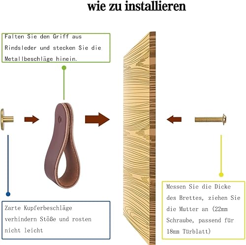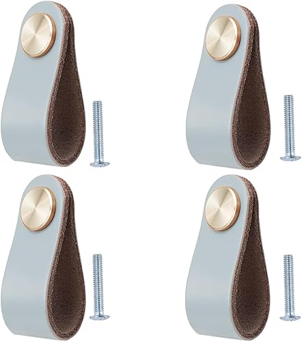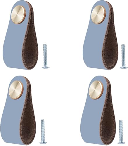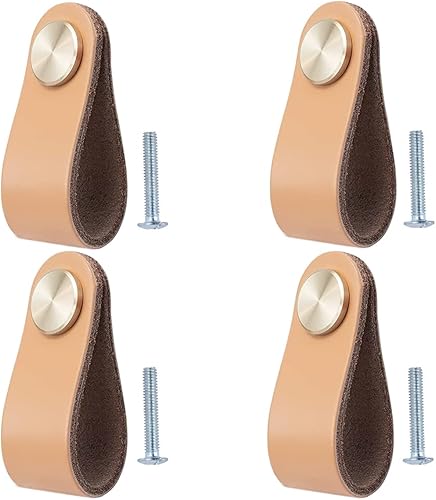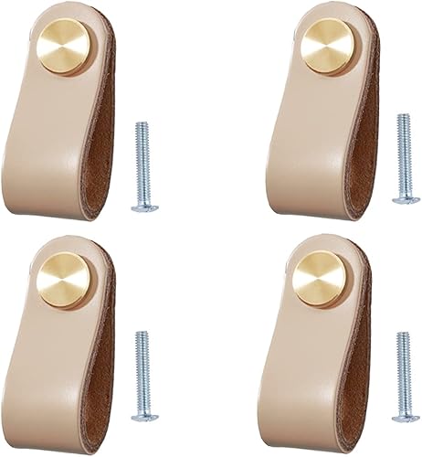 4 Stück Ledergriffe für Möbel,6.4 x 2.5 cm Handgemachte Griff Möbelknöpfe Leder Möbelgriffe,Schrank knöpfe,Schrankknöpfe für Küchenschränke, Kleiderschrank
