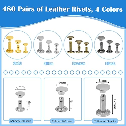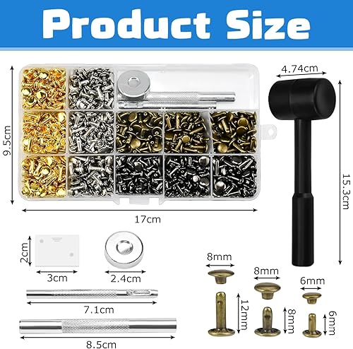 LIMITADA 960pcs Leder Nieten,Ledernieten Set,nieten zum Schrauben für Leder,Leder Nieten,Doppelkappe Nieten,Leder Nieten Set,Metallnieten,Kopfnieten zum Schrauben,Leder Nieten Set für DIY