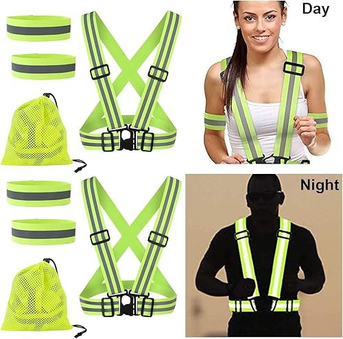 AYNKH Reflektierende Weste Sicherheitsausrüstung, verstellbare hoch sichtbare Gürtel Reflektor Elastische Armbänder mit 1-Aufbewahrungstasche