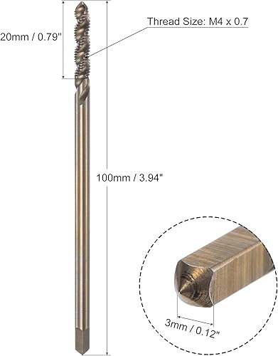 sourcing map Spiralnut Gewindebohrer M4 x 0,7, Metrisch Kobalt HSS (Schnellarbeitsstahl) Titanbeschichteter Maschinengewindebohrer H2 Toleranzklasse