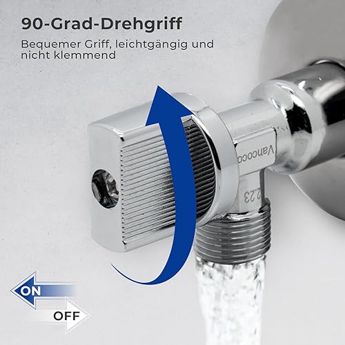 Vancoco Universal Kombi-Eckventil G1/2' Zoll Doppelt DN 15 Spülmaschinen- & Waschmaschinenanschluss 2 in 1 mit 2 COMFORT-Griffe Und Selbstdichtend