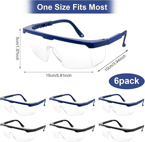 PIWOSGOL 6-er Pack Schutzbrille Arbeitsschutzbrille,Sicherheitsbrillen, Schutzbrille für Brillenträger, Schutzbrillen Transparent, Augenschutzbrille