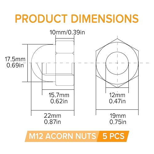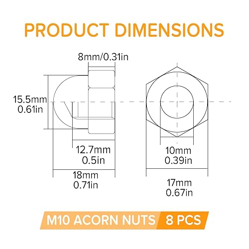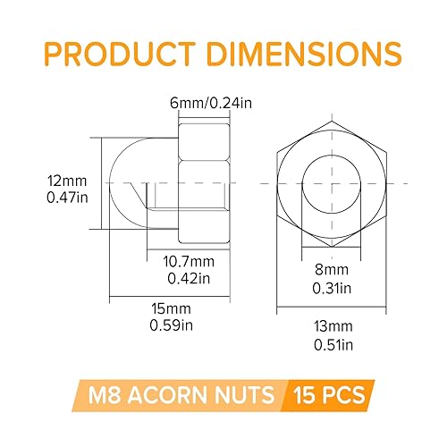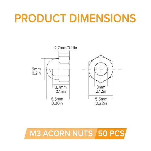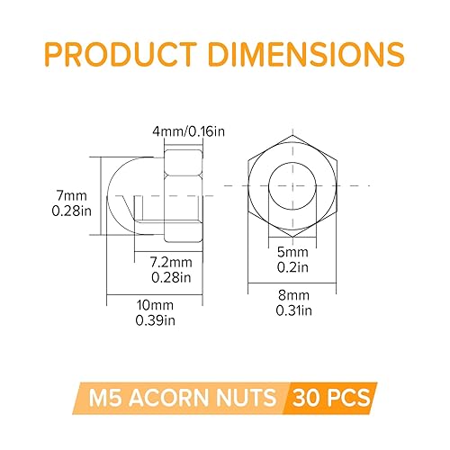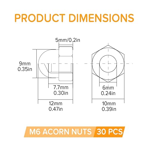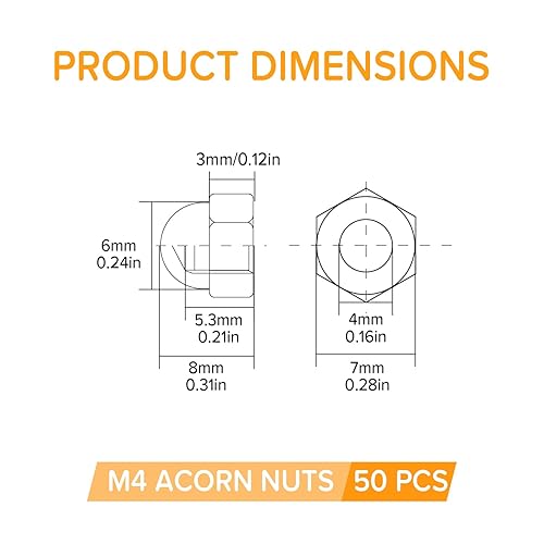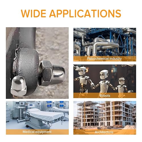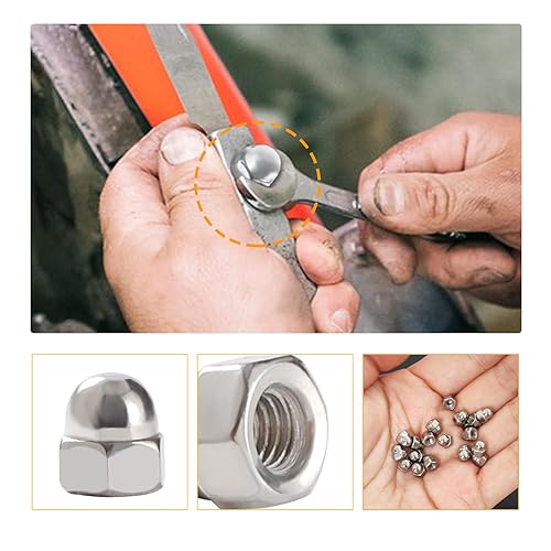 Lyeteung 46 Stücke M3/M4/M5/M6/M8/M10/M12 Sechskant Hutmuttern Edelstahl, Sechskant-Hutmuttern, Eichel-Kuppelkopf-Sechskantmuttern Sortiment Kit, für Schrauben, Bolzen