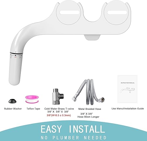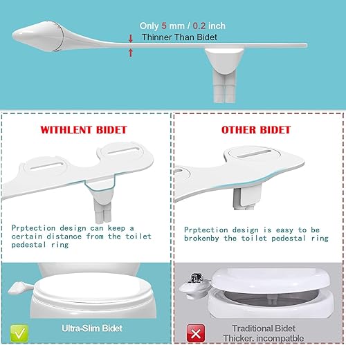 Bidet Insert for Toilet - Ultra Slim Non-Electric Use for Toilet, Double Nozzle Bidet Toilet Attachment, Front and Rear Cleaning, Toilet Attachment, Butt Shower, Taharet (Sliver)