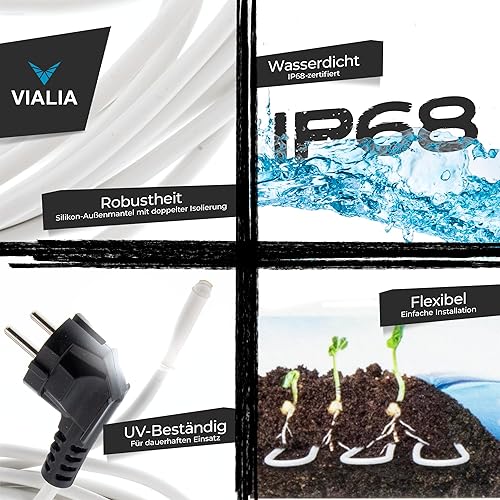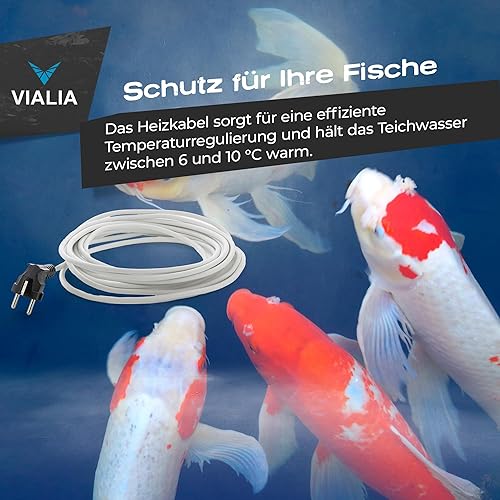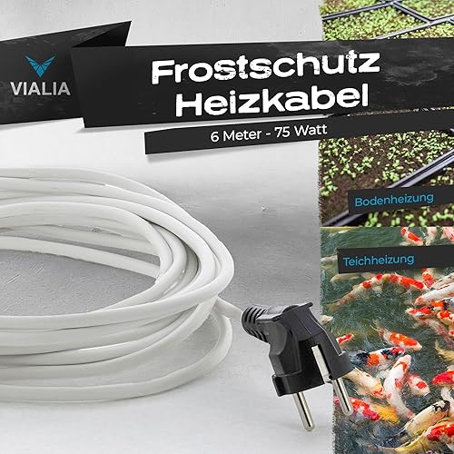 VIALIA Frostschutz Heizkabel, 6m, 75W, für Teiche von 1-4 m³, Wärmekabel gegen Frost, wasserdicht