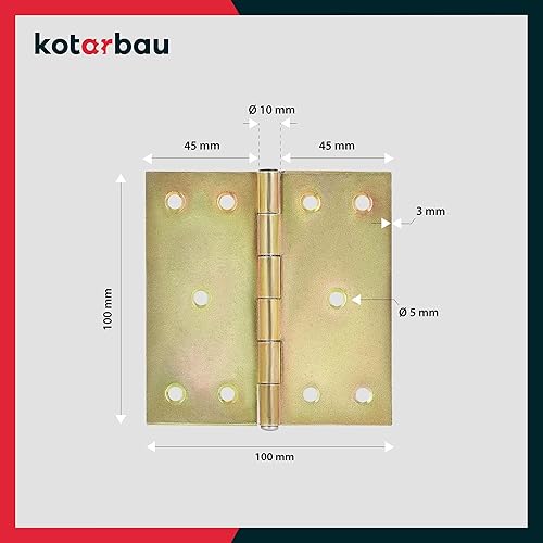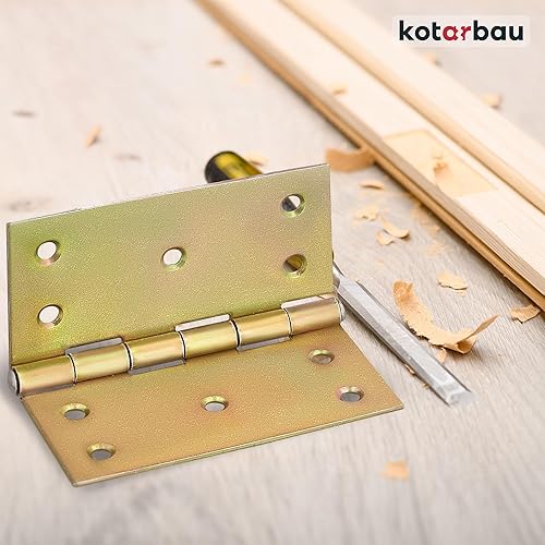 KOTARBAU® 10 Stück Türscharniere 100 mm x 100 mm Gerollt Gelb Verzinkt Kantige Scharniere Möbelband Türband Kistenband Schatullen Schrankscharniere