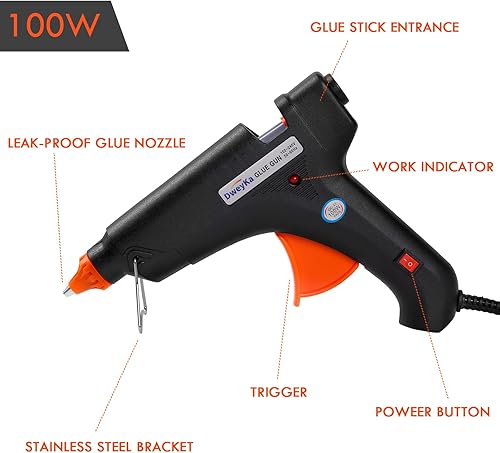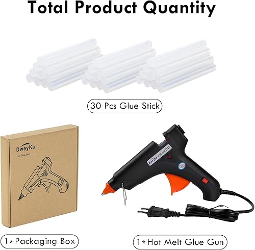 Dweyka Heißklebepistole Klebepistole 100W Set mit 30 Stück Heißklebesticks 11mm Transparente Klebesticks für DIY Kunst Industriell Reparieren Festival Dekorieren (Schwarz)