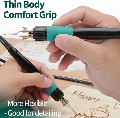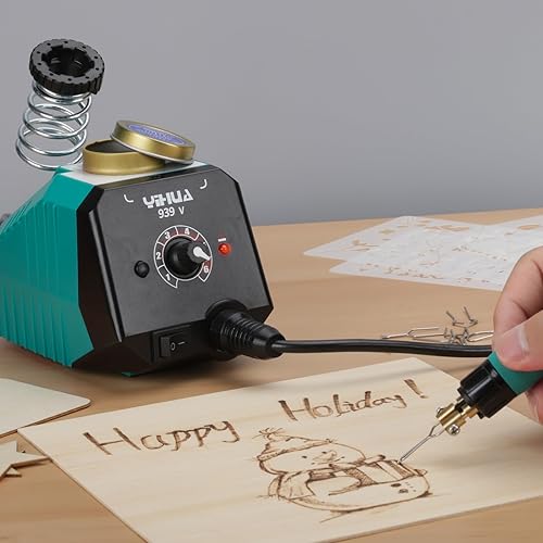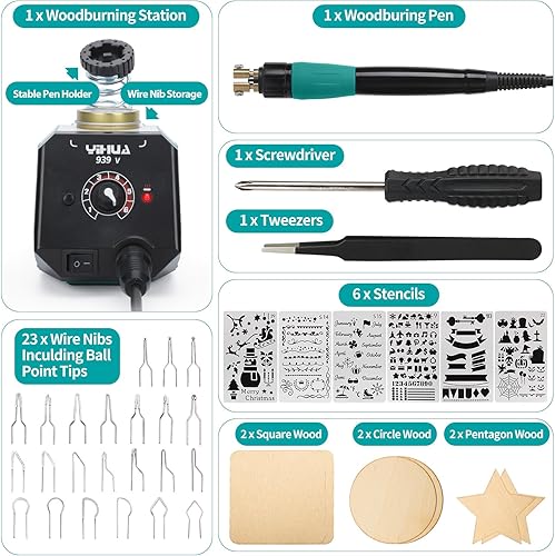 YIHUA 939-V Brandmalerei brennpeter für holz mit 23 Drahtspitzen in verschiedenen Formen, abnehmbarem Holzbrennstift, 6 Holzstücken, 6 Schablonen, Schraubendreher und Pinzette als Holzbrenner set