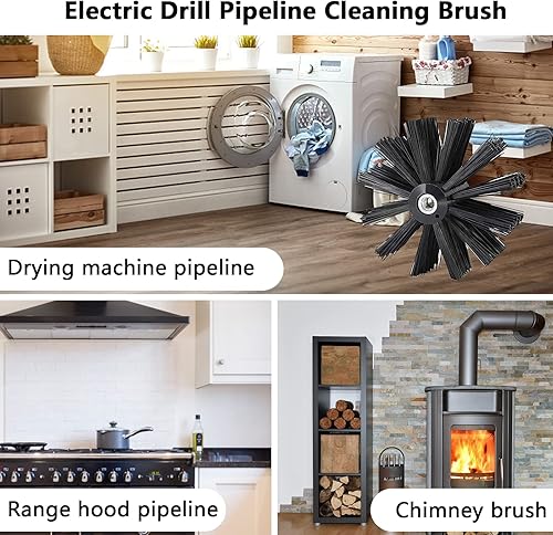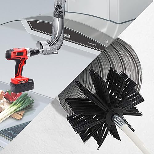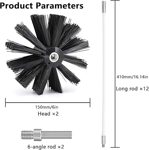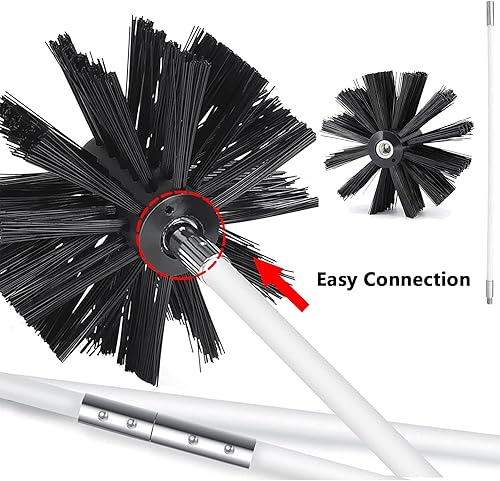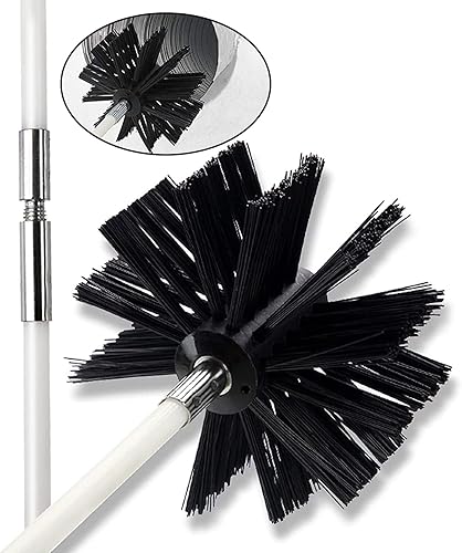 Kaminbürste Stange Set, Durchmesser 150mm Ofenrohrbürste, Schornsteinbürste Trockenrohr Kaminreinigungsstab Reinigungsbürste Kaminbürste enthält 12 Flexible Stangen 410mm, 2 Bürstenkopf Holzofen