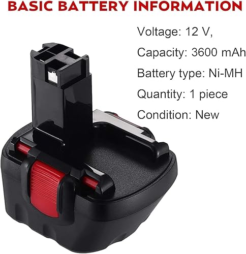 Goodexo 3.6Ah NI-MH Ersatzakku für Bosch 12V Akku für Bosch BAT043 BAT045 BAT120 BAT139 2607335542 2607335526 2607335274 2607335709 GSR 12-2 12VE-2 PSR 12 GSB 12VE-2 22612 23612 32612