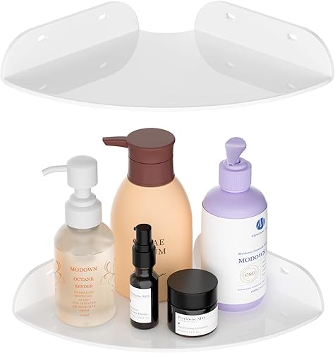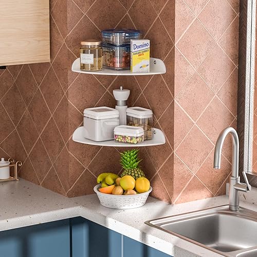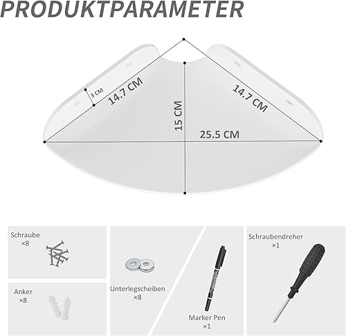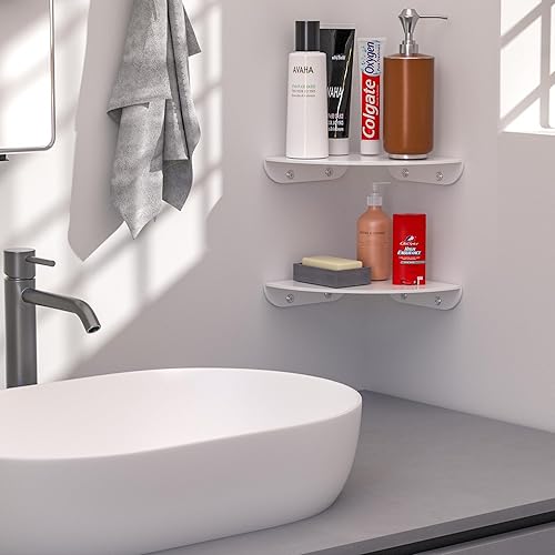 Sezanrpt 18x18CM Eckregal Wandhalterung Set von 2, Weiß Acryl Ecke schwimmende Regale, Ecke Wand Organizer Regal für Badezimmer, Küche, Schlafzimmer, Wohnzimmer, Esszimmer, Büro