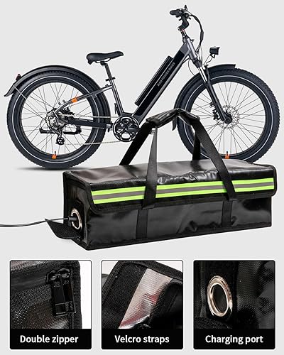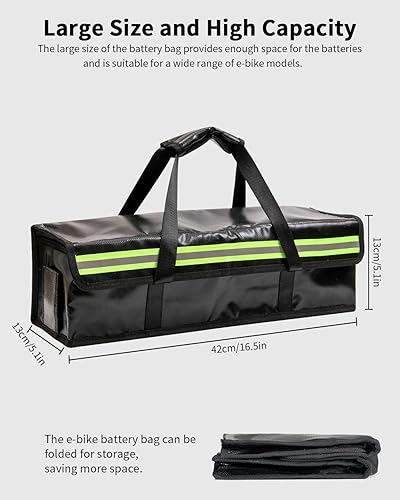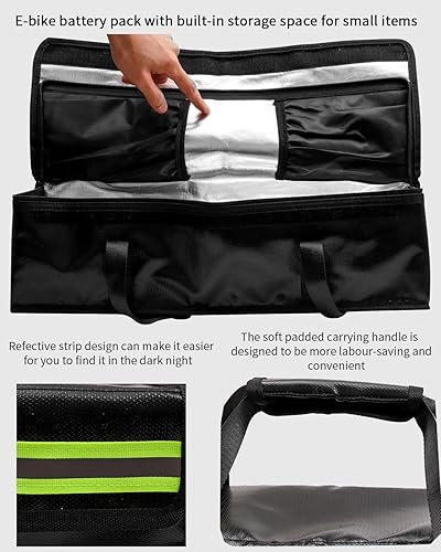 Ebike Akkutasche, Ebike Akku Schutzhülle, 4 Schichten Brandschutz, 1000 °C Feuerfest, Wasserdichte, Reflektierend, Lipo Sichere Tasche für Transport, Lagerung und Aufladung, Großraum 49 x 15 x 14 cm