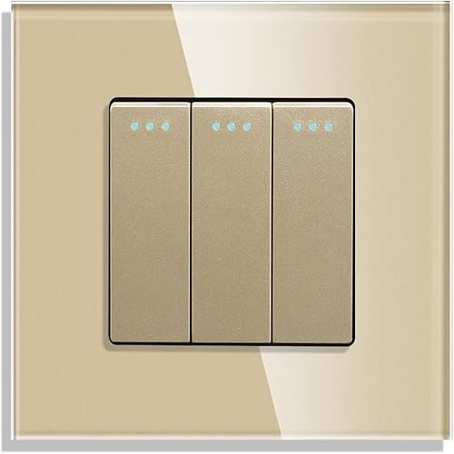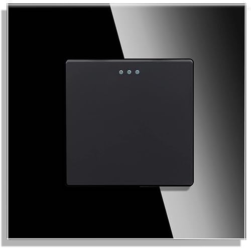 CNBINGO Doppelsteckdose mit Lichtschalter unterputz, Schwarz Wandschalter mit Glasplatte, mit Leuchtstoffpunkten, 1-Fach, 1- poliger Ausschalter