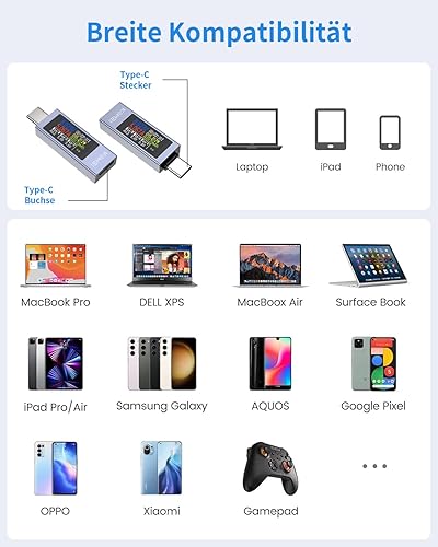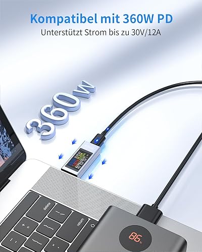 YEREADW USB C Tester Messgerät Typ-C Multimeter Digital, 4-30V 0-12A PD Voltmeter Power Meter Kapazität Spannungsprüfer Strommessgerät, USB Leistungskapazität Detektor (KWS-2303C)