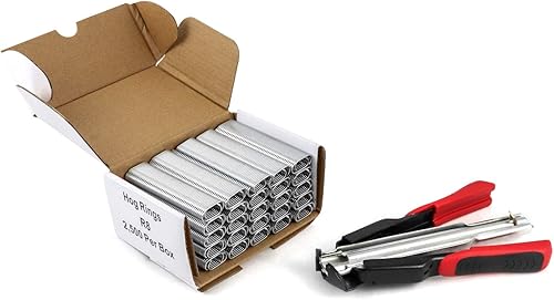 QWORK® Hog Ring Zange Kit, Automatische Zaun Zange mit 2500 Stück Hog Ringe für Tierzaunmatratzen, Auto kissen, Pet Käfige