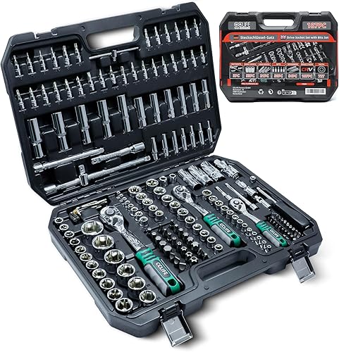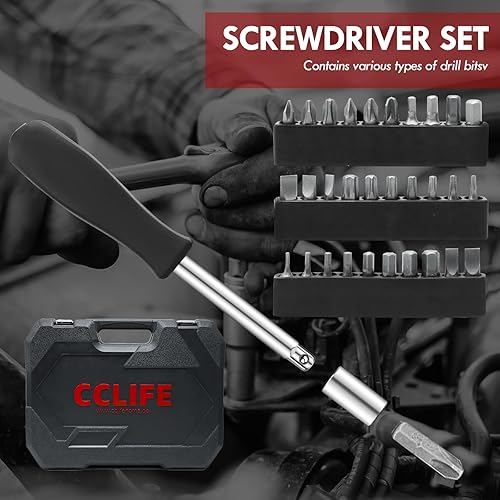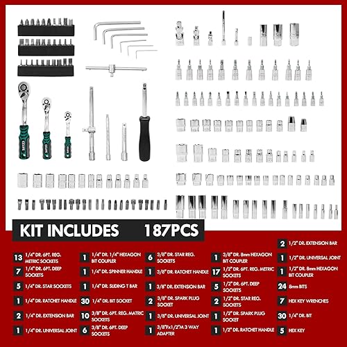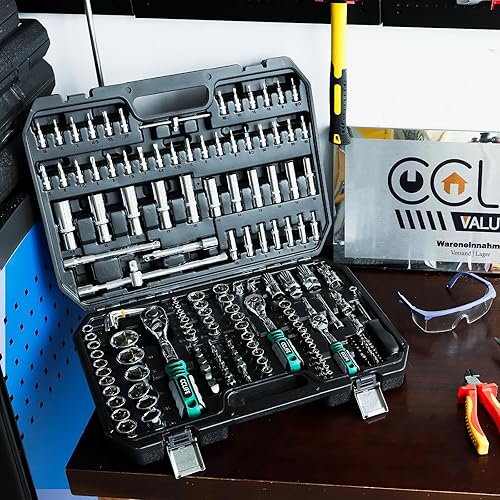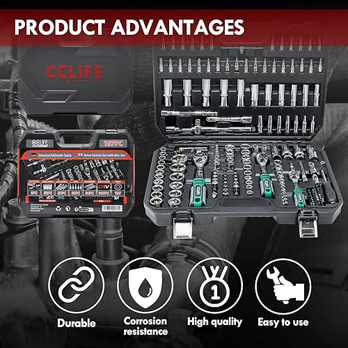 CCLIFE 187 tlg Steckschlüsselsatz Cr-V Ratschenkoffer Werkzeugkoffer 72 Zähne 1/2' 1/4' 3/8' Sechskant Steckschlüsseleinsatz Torx, Schlitz, Phillips, Pozidrive Bit Steckschlüsseleinsätze