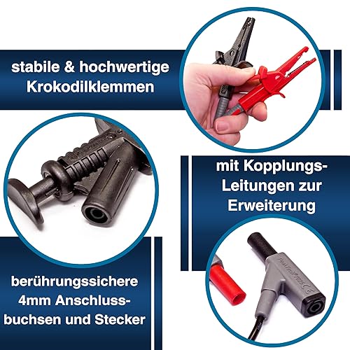 Peak Tech P 8200 – Messzubehör Set für Digital Multimeter - Messspitzen für Multimeter & Krokodilklemmen mit Kabel, Multimeter Messleitungen - Messkabel für Multimeter/Multimeter Kabel + Prüfspitzen