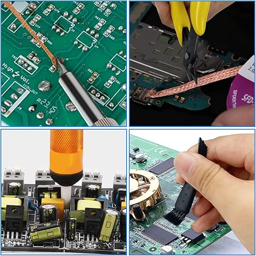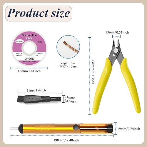 Lötsauger-Entlötpumpe, Lötsauger-Entlötdocht-Kit, einschließlich Mikroscher-Drahtschneiderzange mit Zangenscheide, 3-teilige Entlötdochte (2 mm Breite, 3 m Länge), 2-teilige Reinigungsbürste