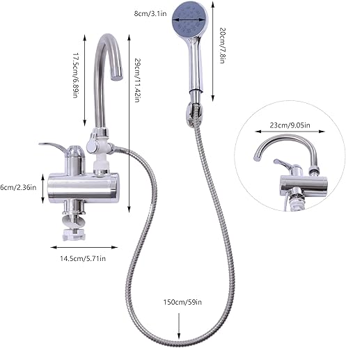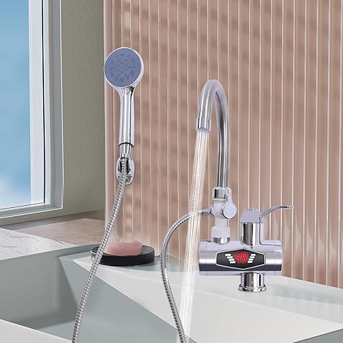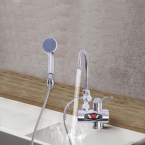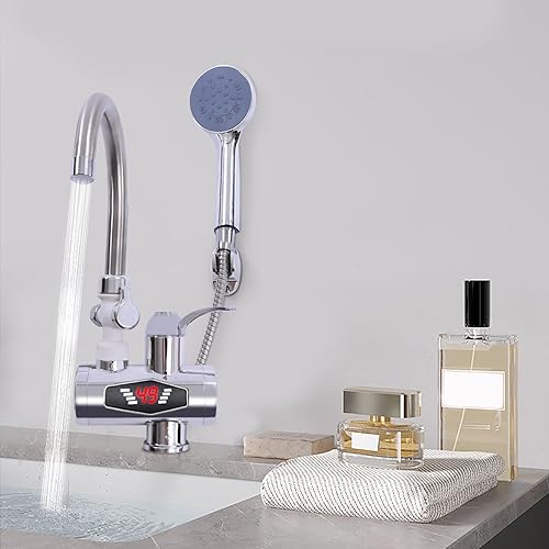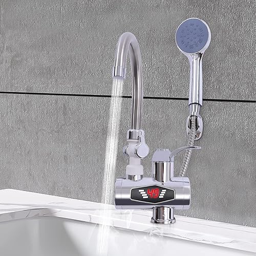 MINRS Wasserhahn mit Durchlauferhitzer 220V Elektrischer Wasserhahn Elektrischer Durchlauferhitzer Wasserhahn mit Dusche 360° Drehbar Sofort Heizung 30-60°C, LCD Temperaturanzeige für Küche Bad
