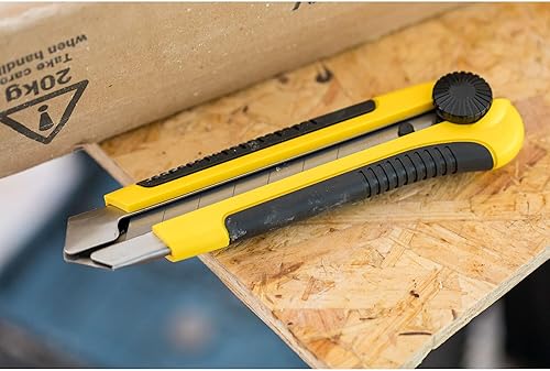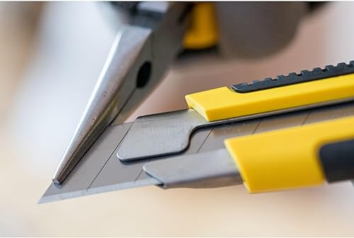 Stanley Cutter-Messer 1-10-425 (25mm Klingenbreite, 180mm Länge, Kunststoff, Fixierung der Klinge durch Schraube, vielzeitiges Messer mit Abbrechklinge für präzise Schnitte in Papier, Pappe, Folie)