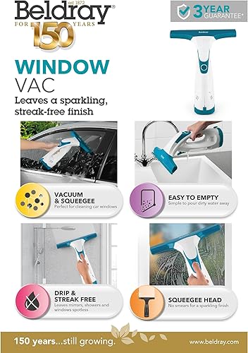 Beldray BEL0749TTVDE Titanium Cordless Window Vacuum – Handfensterreiniger mit Rakelkopf, 60-ml-Wassertank, tropf- und streifenfreie Reinigung, bis zu 30 Minuten Betriebszeit, wiederaufladbar, leicht