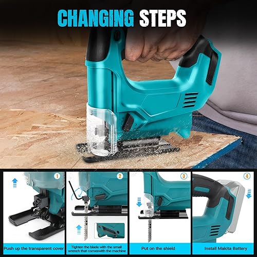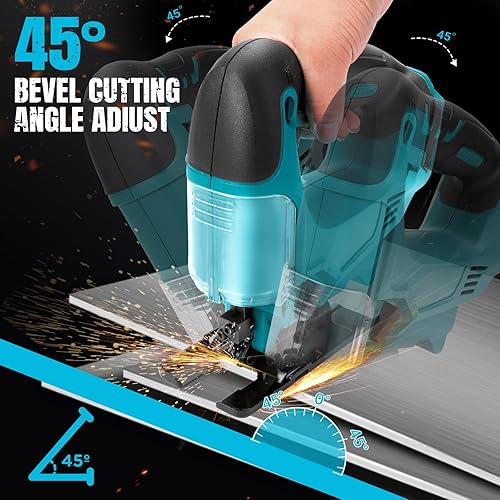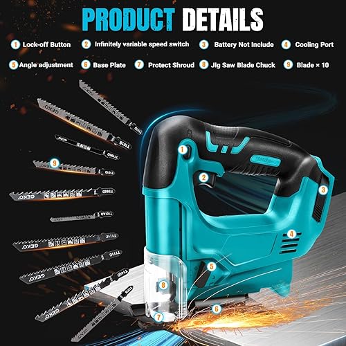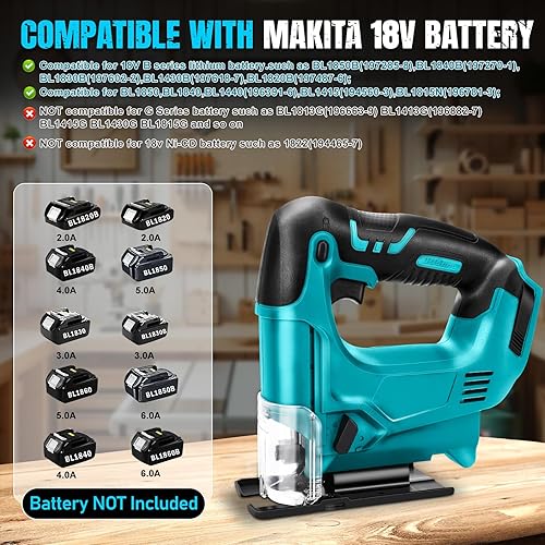 Akku Stichsäge für Makita 18V Lithium-Akku, Elektro-Stichsäge mit 10 Stichsägeblatt,Variable Geschwindigkeit, zum Schneiden von Holz, Kunststoff und Metall(Batterien nicht Enthalten)