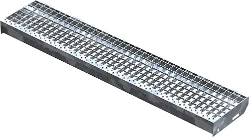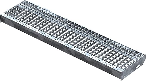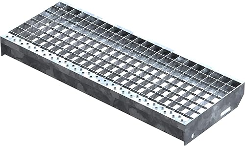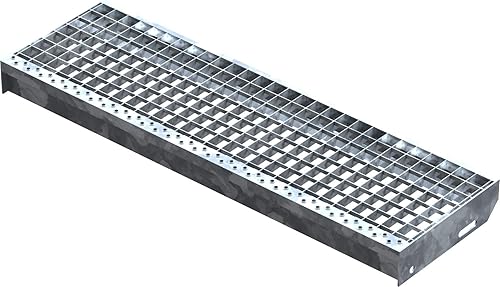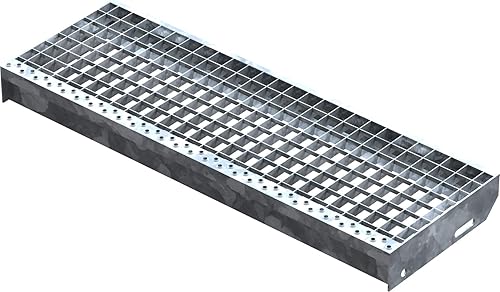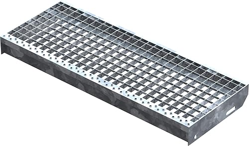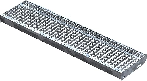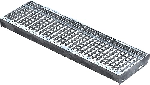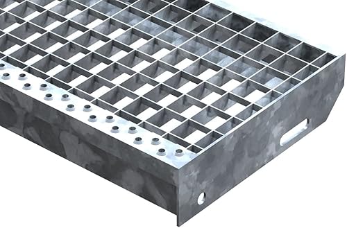 Fenau – 600 x 240 mm - Gitterrost-Stufe (R11) XSL, MW: 30/30 mm, verzinkt, Stahl-Treppenstufe nach DIN-Norm, Fluchttreppen geeignet, Anti-Rutsch-Wirkung