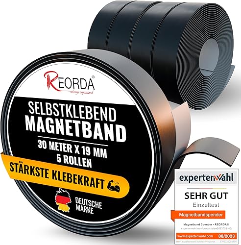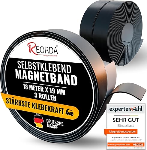 REORDA® Magnetband selbstklebend - [STARKER KLEBER] Magnetstreifen selbstklebend - Magnetklebeband mit optimierter Magnetkraft - Magnet Klebeband (18 Meter)