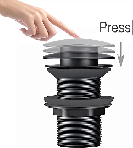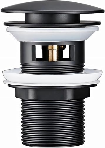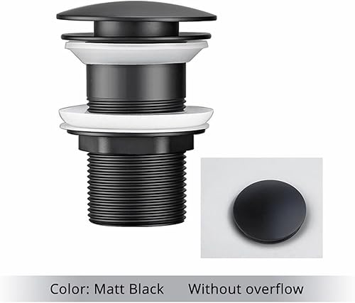 Universal Waschbecken Ablaufgarnitur Ohne überlauf Abflussgarnitur Pop Up Ventil Waschtisch abfluss ventil Click Clack Schwarz Messing & Edelstahl,(Überlauf)