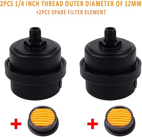 Luftkompressor-Schalldämpfer-Filter, Kunststoff, Luftkompressor, Ansaugfilter, Schalldämpfer mit Filterelement, 1/4 Zoll, 2 Stück