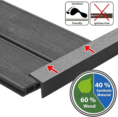 Montafox 5 Stück WPC Abschlussleisten 190 cm Abdeckleiste Terrassendielen Dielen L-Leiste - Grau