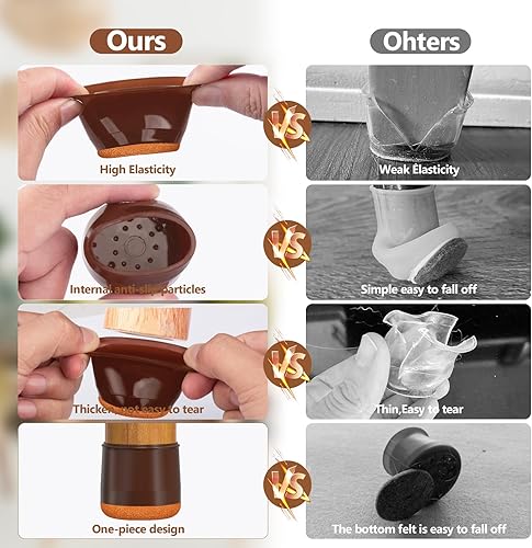 28 Stück Stuhlbeinkappen Rund, BAIPOK Silikon Schutzkappen für Stuhlbeine, Rechteckige Filzgleiter für Stühle, Stuhlbeinschoner für Hartholzböden (Fit:15-23mm)