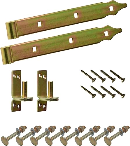 BRESKO Ladenband mit Kloben und Schrauben Set gelb verzinkt 300-800 mm Torband Türband Scharnier Tor Gartentor (300x30 mm - Ø 10 mm)