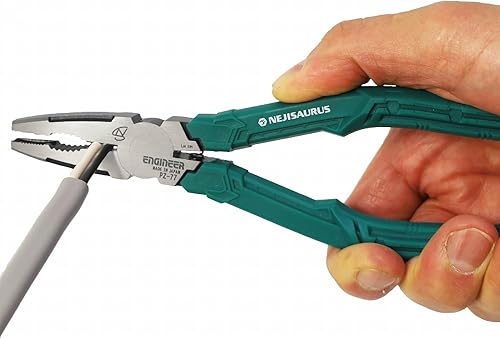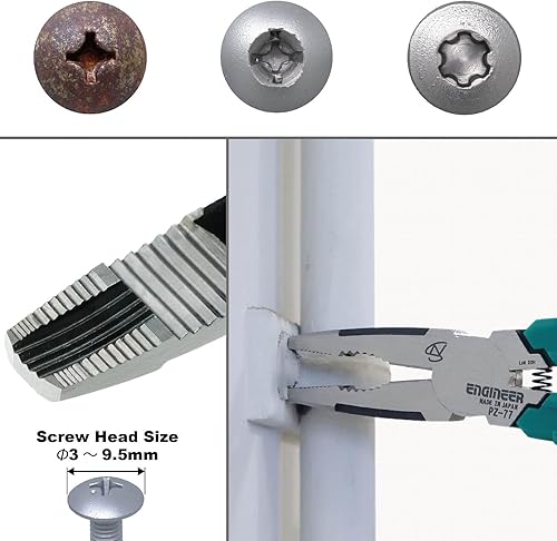 Kombizange mit vertikalen Rillen zum schnellen Lösen beschädigter Schrauben inkl. Schutzkappe und gefederte Griffe. Gesamtlänge 182mm. Japanische Herstellung. ENGINEER PZ-77