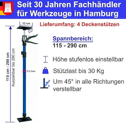 4 Stk. Deckenstütze Montagestütze 115-290cm Schnellspannstütze Türspanner Einhand- Stütze Teleskopstange Zargenspanner 30kg Stahl
