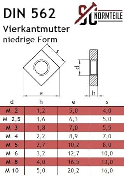Vierkantmuttern (niedrige Form) - M8 - (40 Stück) - DIN 562 - Edelstahl A2 (V2A) - Einlegemutter - SC562 | SC-Normteile®