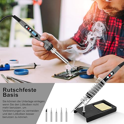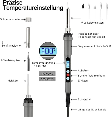 60W Lötkolben Set, Lötkolben, Lötkolben set elektronik,Temperatur Einstellbar 180-500℃,19 in 1 Lötset mit Digitalmultimeter, 5 Lötspitzen,Lötkolbenständer, Lötzinn,Entlötpumpe,Pinzette usw.