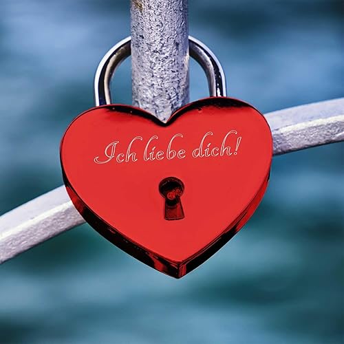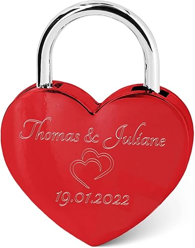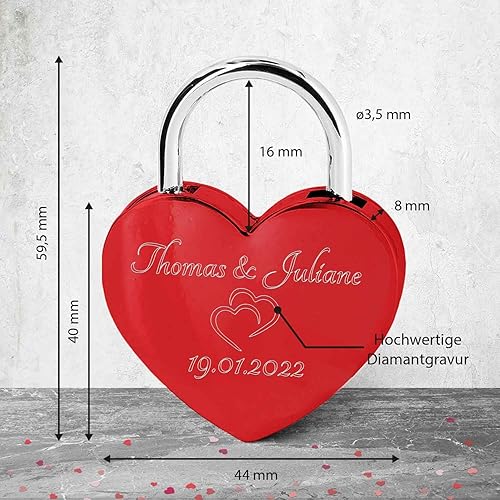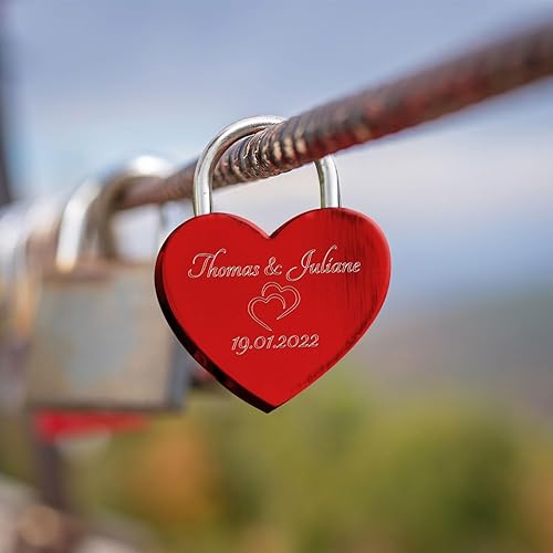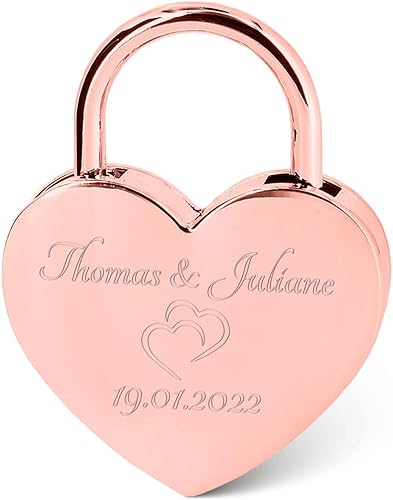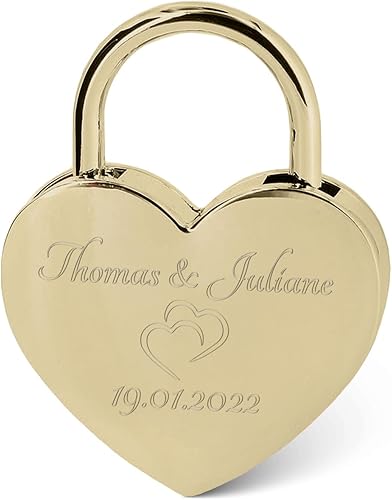 GRAVURZEILE Herzschloss mit Gravur - Personalisiertes Schloss in Gold mit Herzschlüssel - Personalisiert mit Namen & Datum - Geschenkidee zum Valentinstag - Geschenk für Sie & Ihn - Gold