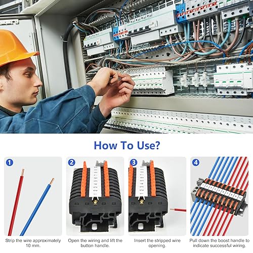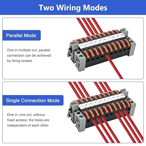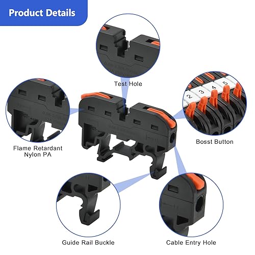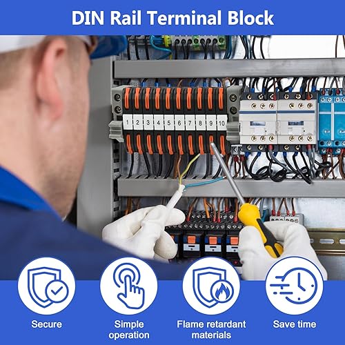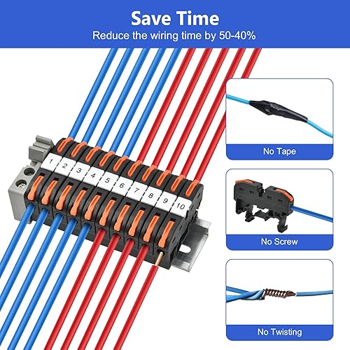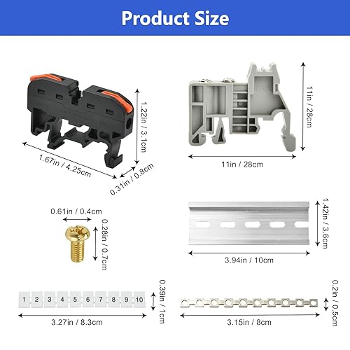 Vothen 40 Stück Reihenklemmen Hutschiene, Hutschienen Klemmen, Klemmblock Klemmleiste Kit mit 10cm Hutschiene, Elektrische Anschlussblöcke 0,08-4mm²,für Automatisierungsprojekte DIY-Projekte, steckbar