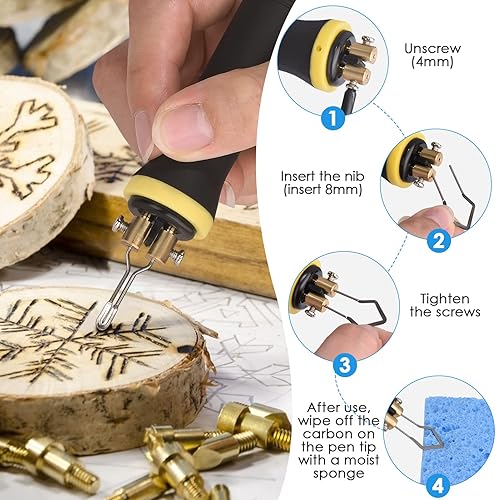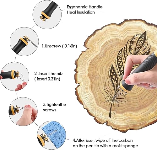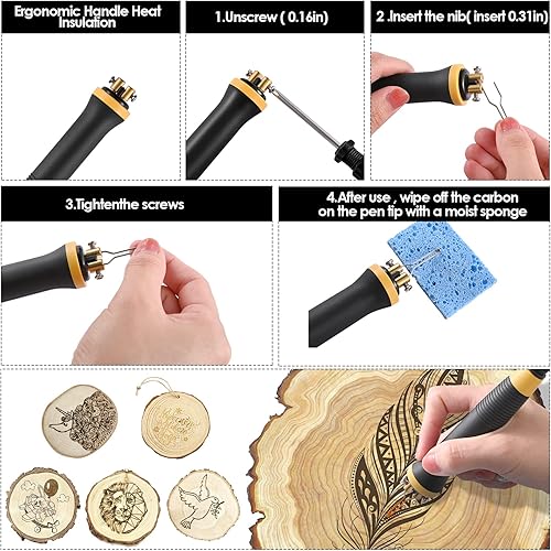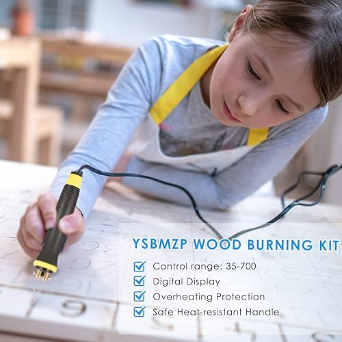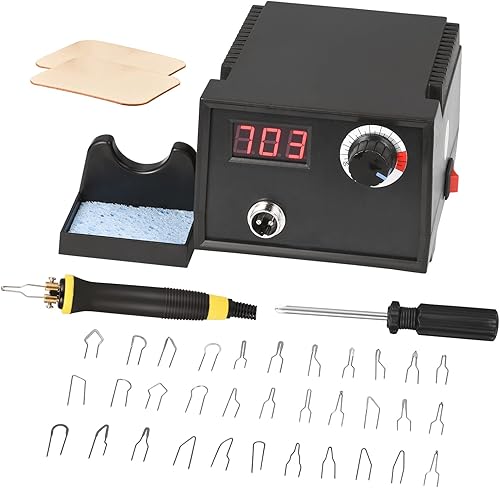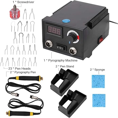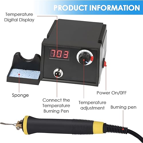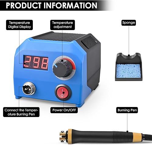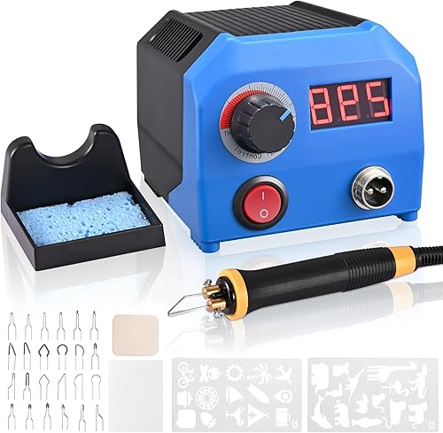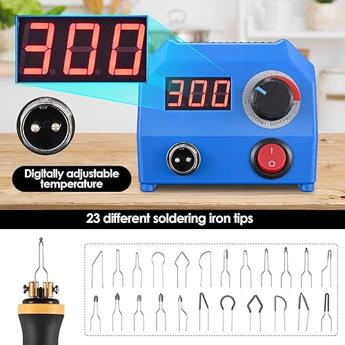 Trsaow Brandmalmaschine 60W LCD Holzbrenner 0-750°C für Holz, Leder, Kürbis, 2 Stifte und 33 Drahtspitzen