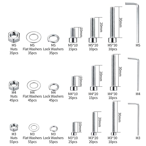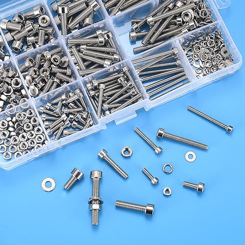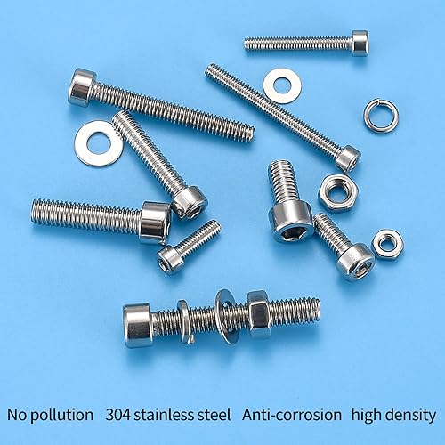 540 Stk M3 M4 M5 Zylinderschrauben mit Muttern Unterlegscheiben Set, Edelstahl Sechskopf Fahrrad Gewindeschrauben Muttern und Unterlegscheiben, Innensechskant Schraubensortiment Set