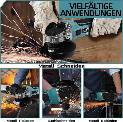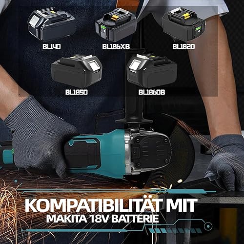 Akku Winkelschleifer für Makita 18V, 8500 U/min Kompakter Profi-Schleifer mit 4 Variablen Geschwindigkeiten, 125mm Schleifen Winkelschleifer zum Polier,Schleifen und Trennen(Ohne Akku)