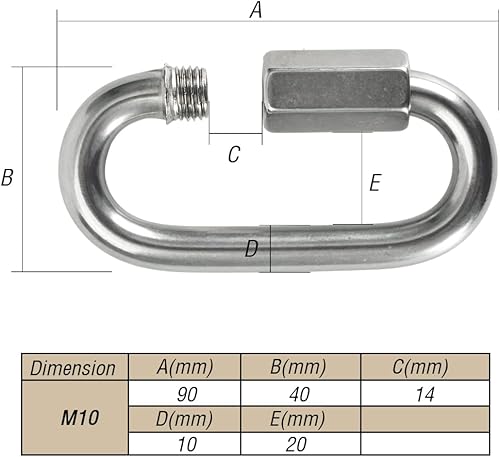 Cozihom 3,5-Zoll-Edelstahl-Ketten-Schnellglieder, M10 3/8 -Zoll-Verschlusskarabiner, Kettenhaken, drehbares Schlüsselring-Schraubkettenglied, 2310 Pfund Kapazität, 2 Stück