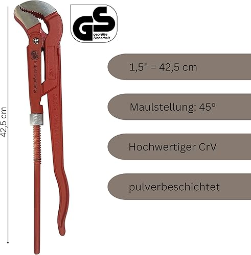 Hoga Rohrzangenset, S-Maul, 3-tlg, 1' 1,5' 2' Zoll, Eckrohrzangen, Chrom Vanadium