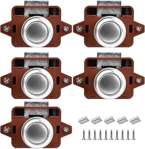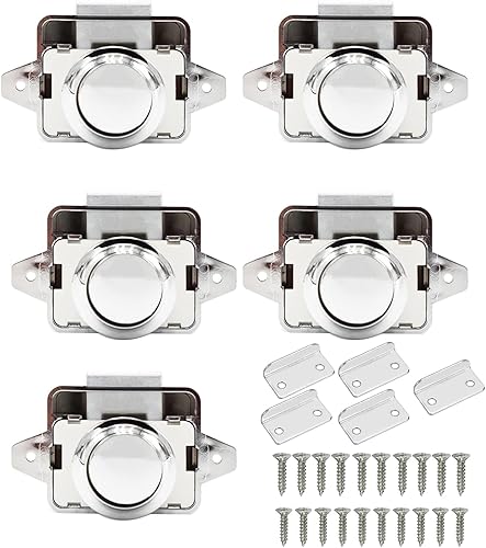 Jinlaili 5 Stück Push Button Catch Door Lock Metal,Taste Schubladen Verriegelung,Keyless Locks Riegelknopfschrank,Push Lock Schloss Wohnmobil,für Tür,Schrank,Wohnmobil,Yacht,Schiff