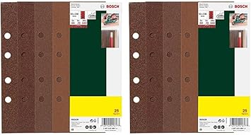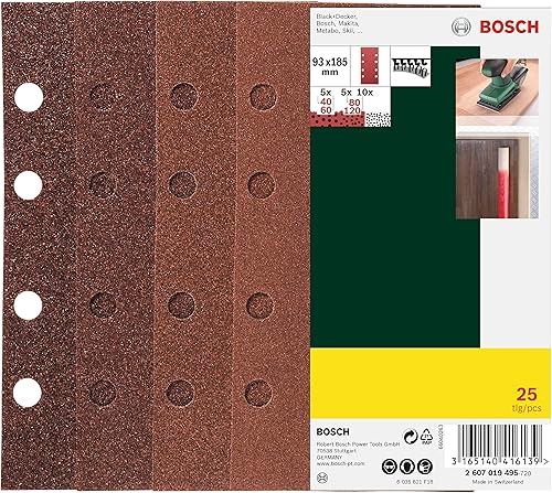 Bosch 25tlg. Schleifblatt Set verschiedene Materialien (Körnung 40/60/80/120, 8 Löcher, Zubehör Schwingschleifer), (25 Stück), 1er Pack